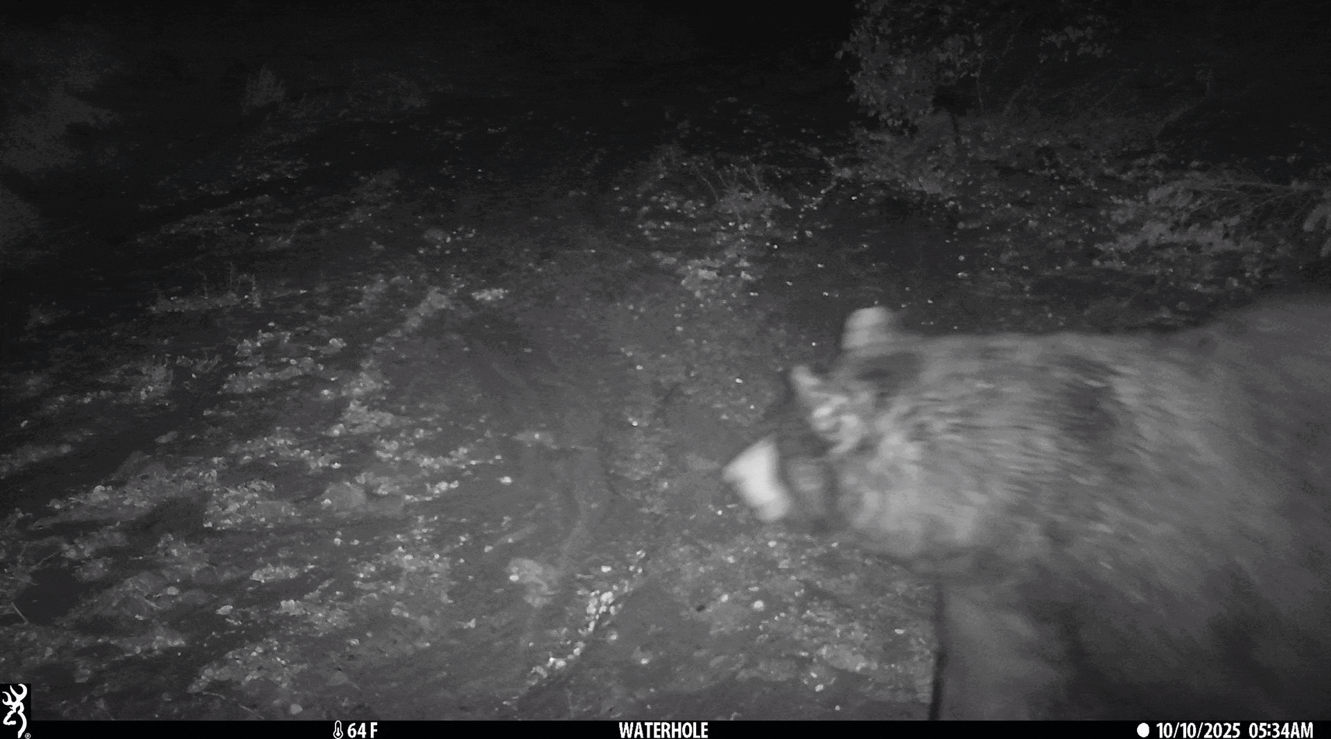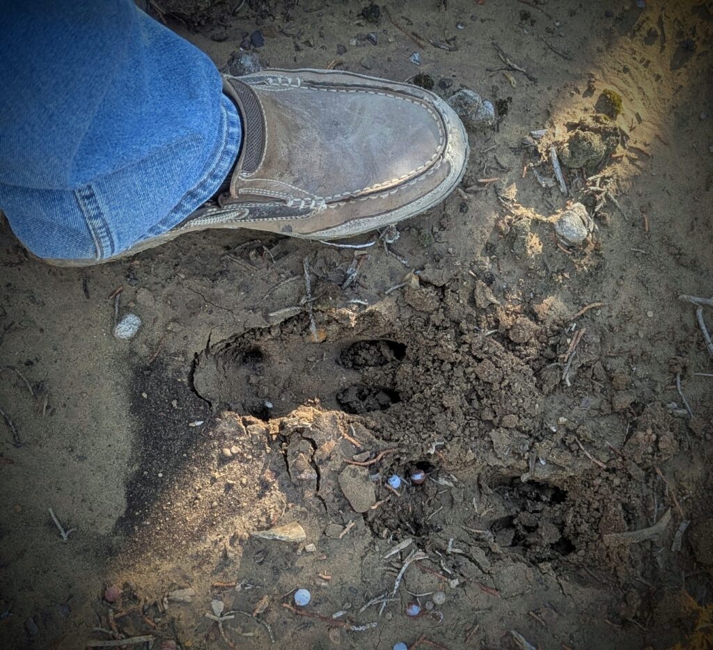 On Sunday, I biked to the west side of the property and placed a camera near Eagle Canyon. Saw lots of fresh deer tracks and bedding areas in the area as well as multiple bear scats.